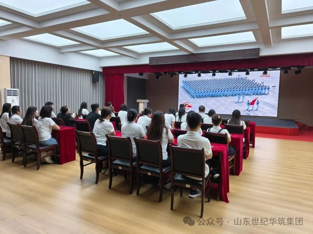 9 月 3 日,纪念中国人民抗日战争暨世界反法西斯战争胜利 80 周年阅兵式在天安门广场隆重举行。为引导集团员工沉浸式感受阅兵盛典的庄重氛围与民族气魄,进一步深化“铭记历史、缅怀先烈、珍爱和平、开创未来”的思想共识,世纪华筑集团组织行政员工集中观看此次阅兵直播,共同见证这一具有重大历史意义的时刻。
